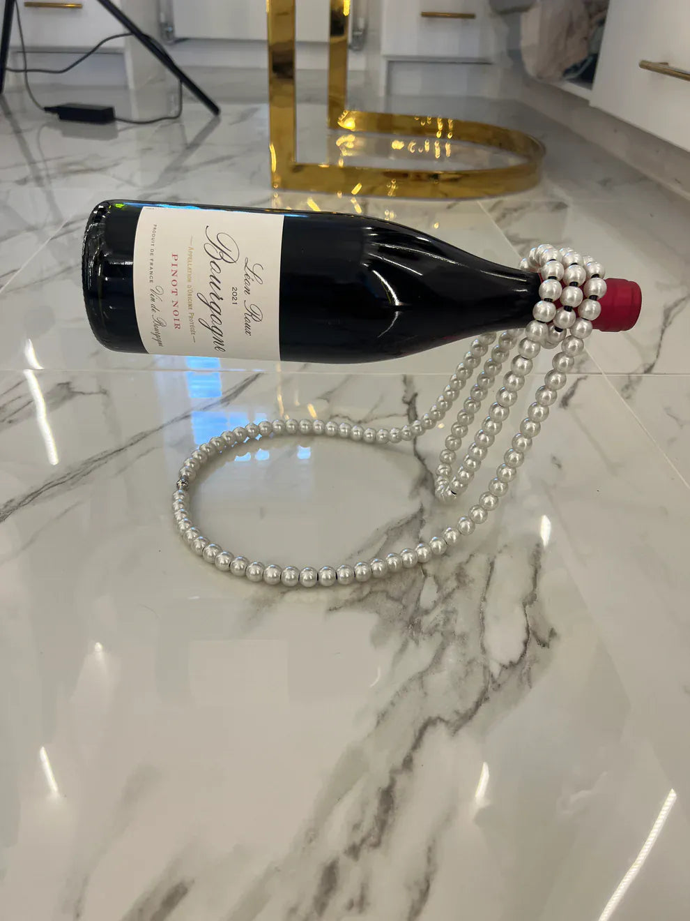 Vinfloater med pärlhalsband ger din vinflaska en elegant och exklusiv svävande effekt. De formade pärlorna skapar en lyxig och dekorativ look som passar perfekt i både moderna och klassiska hem. En unik inredningsdetalj som också blir en sofistikerad present för någon som uppskattar stil och design.